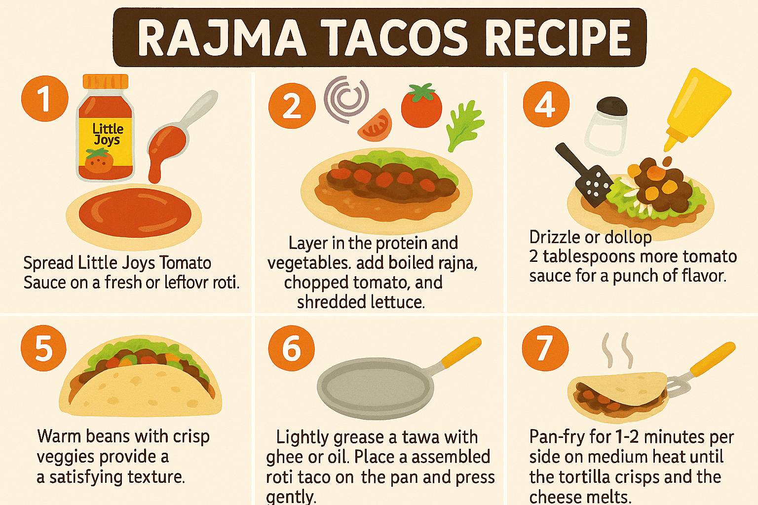 Protein-Rich Rajma Tacos are a clever, kid-friendly way to combine familiar flavors with nutrient-dense ingredients. Quick to prepare, playful to eat, and adaptable to dietary needs, these tacos are anchored by Little Joys Tomato Sauce, ensuring meals are fresh, natural, and free from unnecessary additives.