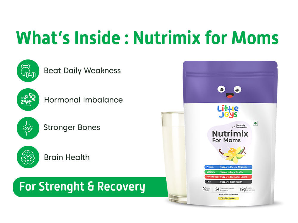 A. Nutrimix is designed specifically for moms. It not only provides high-quality protein for strength but also includes DHA for brain health, Myo-Inositol for hormonal balance, and a Probiotic & Prebiotic for gut health, vitamins for filling nutritional gaps & benefits you won't find in standard powders.
